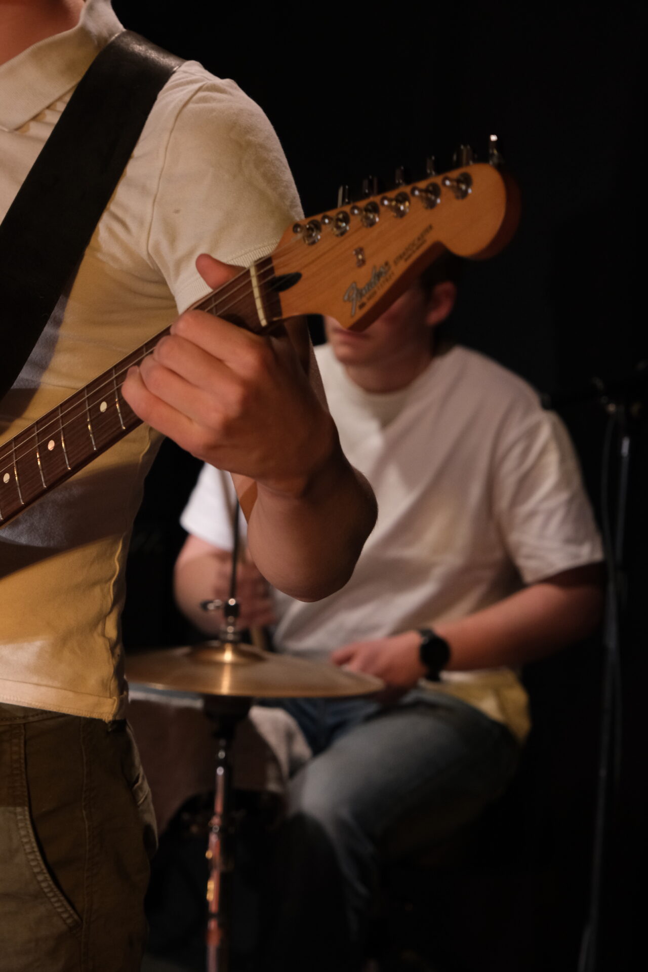 Dei fleste linjedagane er du i øvingslokala, i studio eller på scena. Her kan du utvikle deg på det du allereie er god på. Om gitar er hovudinstrumentet ditt, er det likevel ikkje usannsynleg at du sit bak trommesettet på huskonsertar og jamsessions.