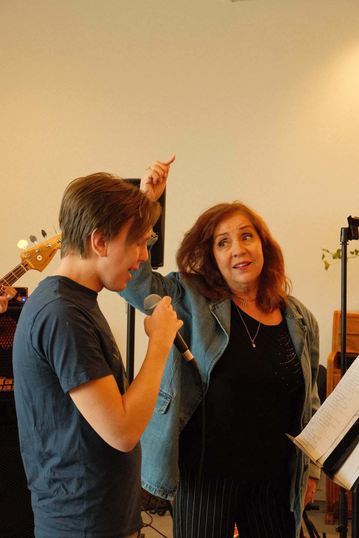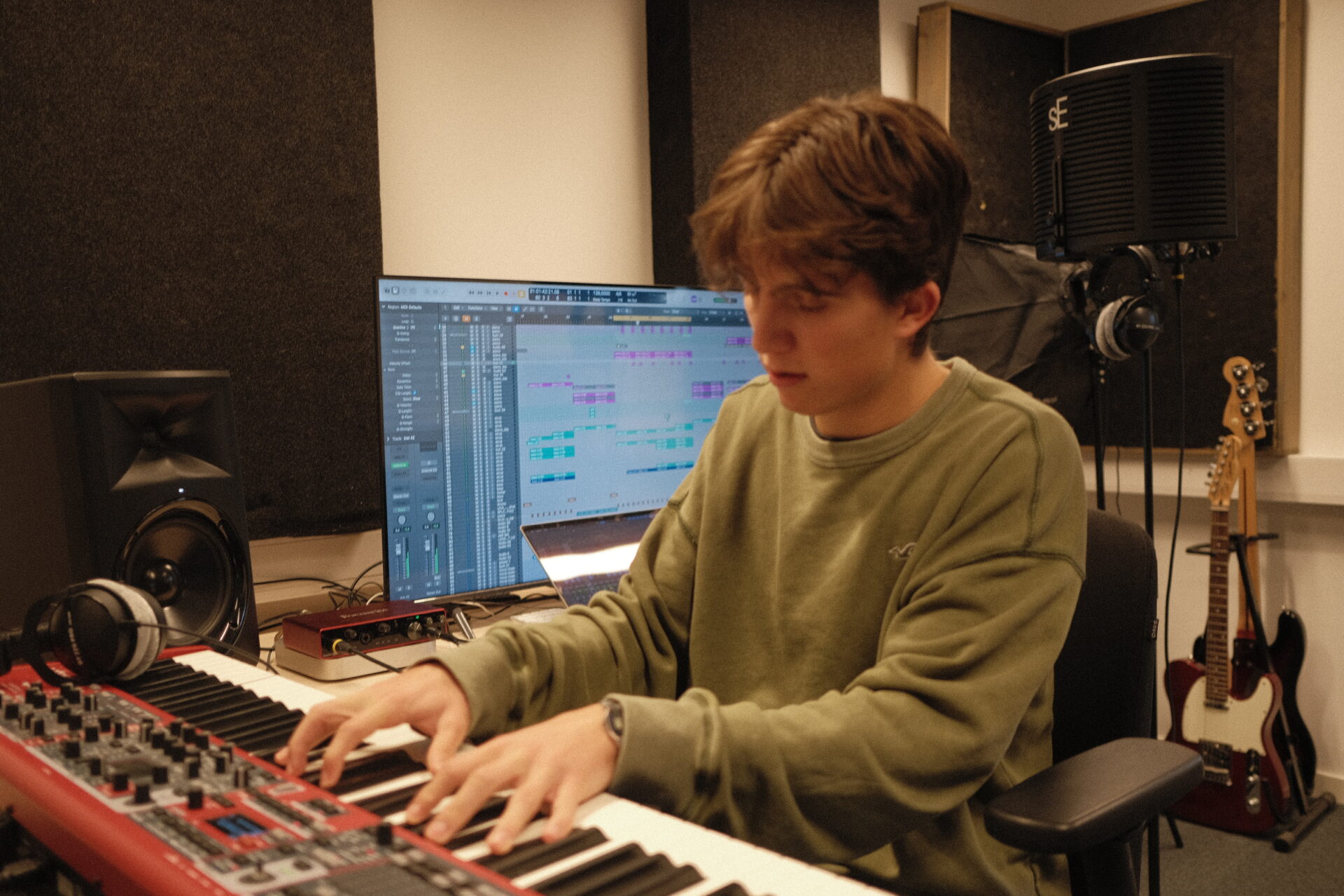 Du lærer meir om låtskriving, samspel, arrangering, opptak og miksing. Instrument, Mac’ar og Logic står til fri bruk. Når låta di er spelt inn, er det tid for musikkvideo. På skulen sin musikal i kulturhuset for 2500 tilhøyrarar kan du stå på scena, spele i band eller jobbe med lyd/lys. Du får også konsertar, artistmøter og tilbud om sangpedagog.